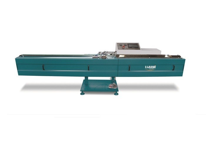 A máquina butílica da extrusora é usada para o revestimento da tira rígida do espaçador, que é composta do sistema hidráulico, sistema de aquecimento, sistema de controlo, fuselagem e assim por diante. Antes de mais nada, o equipamento detecta automaticamente a largura do espaçador, os dados são transmitidos ao bocal de borracha, de modo que a largura da abertura do bocal de borracha alcance a largura do estado da colagem, e então a correia transportadora transporta a tira do espaçador ao bocal de borracha, e o bocal de borracha cola simultaneamente em ambos os lados da tira do espaçador. No tempo exato do pulverizador e da ruptura do bocal da colagem do controle do PLC, e então pelo controle do conversor de sistema hidráulico e de frequência do motor a quantidade de colagem, de modo que o intervalo entre os dois lados do controle da colagem dentro de 0,1 gramas